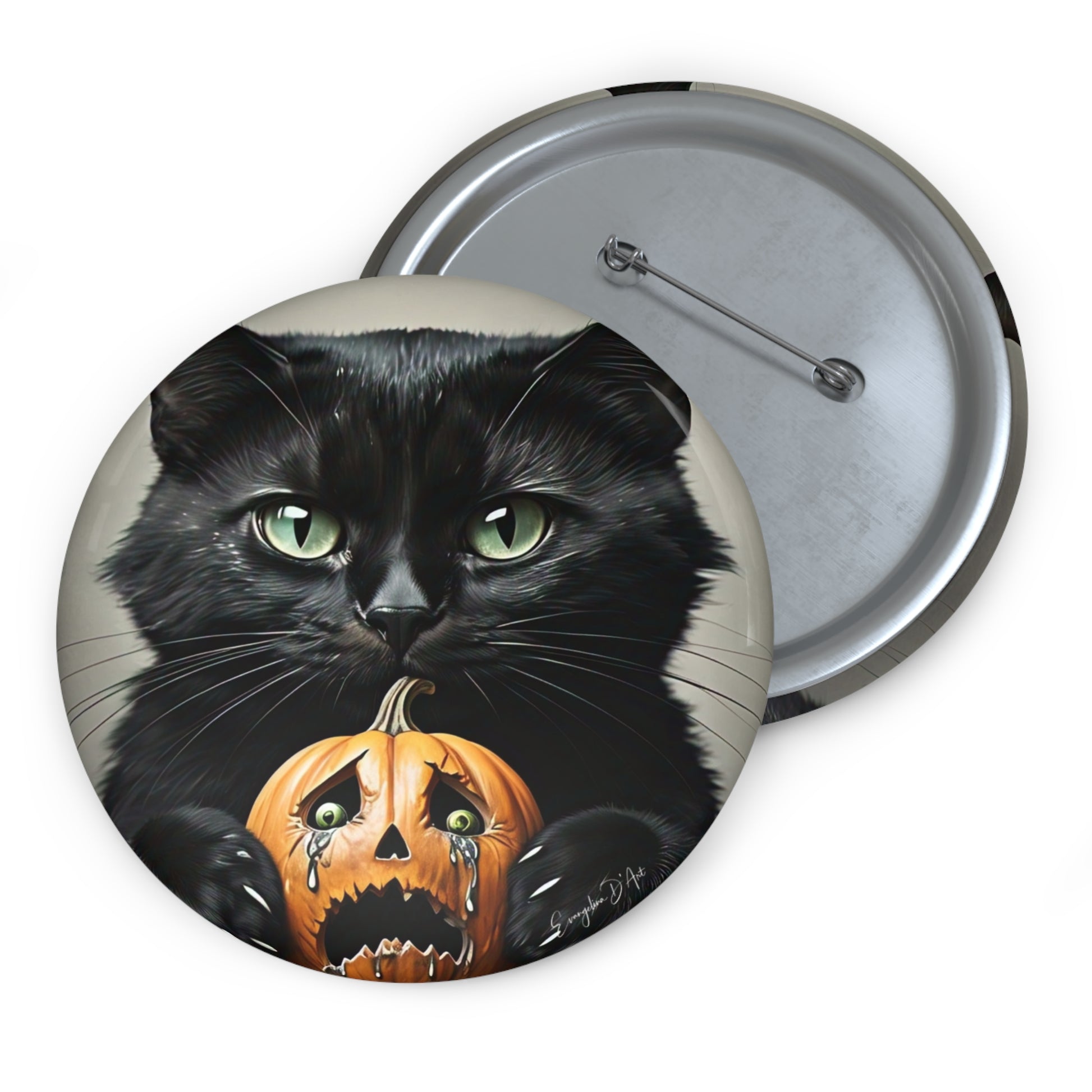 Black Cat Pin Button,Halloween Badge,Custom Pin Buttons,Cat Lover Gift,Haunted