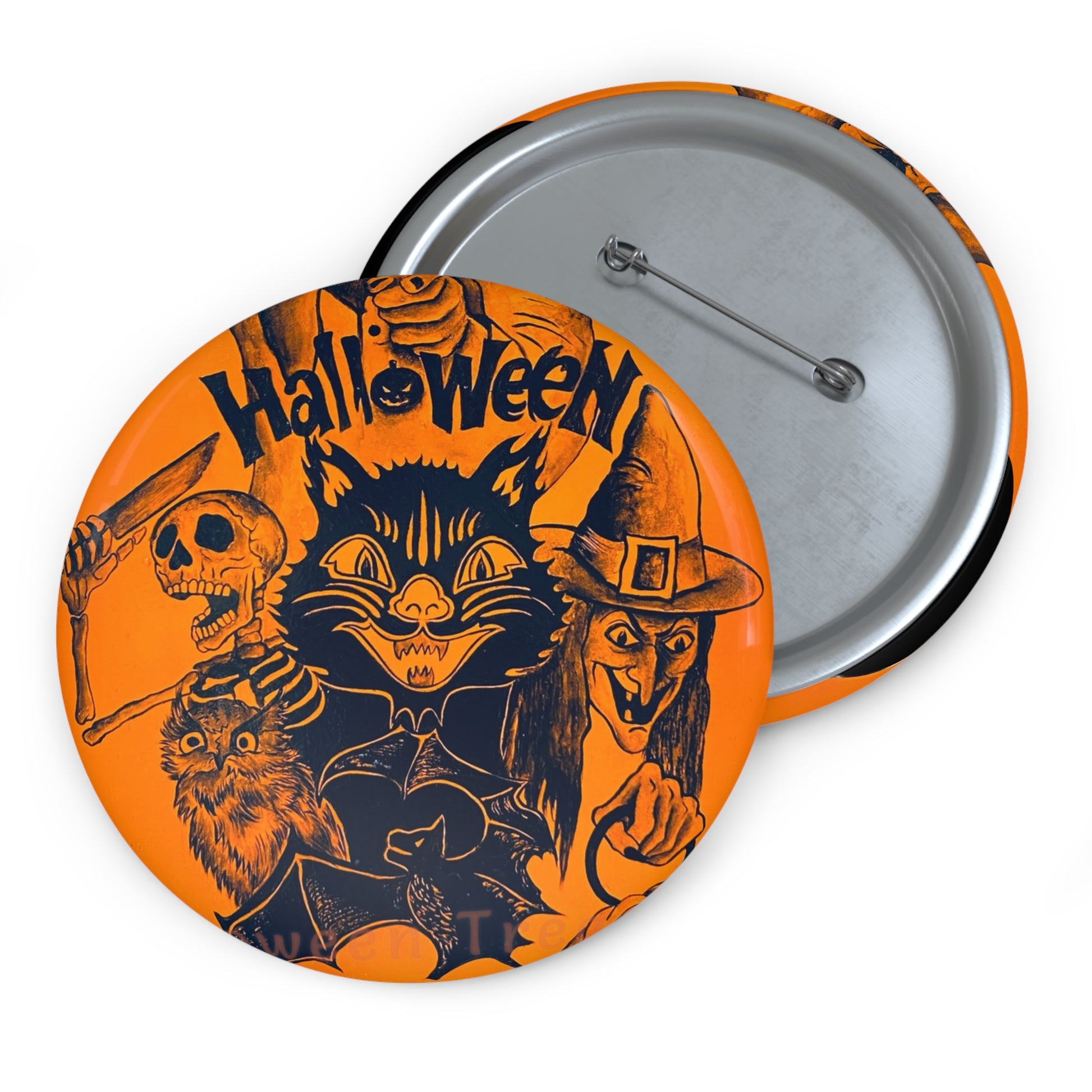 This Halloween pin button exudes a spooky and festive vibe, perfect for Halloween enthusiasts looking to add a touch of Halloween spirit to their outfit or accessories. Ideal for Halloween parties, trick-or-treating, and costume events.