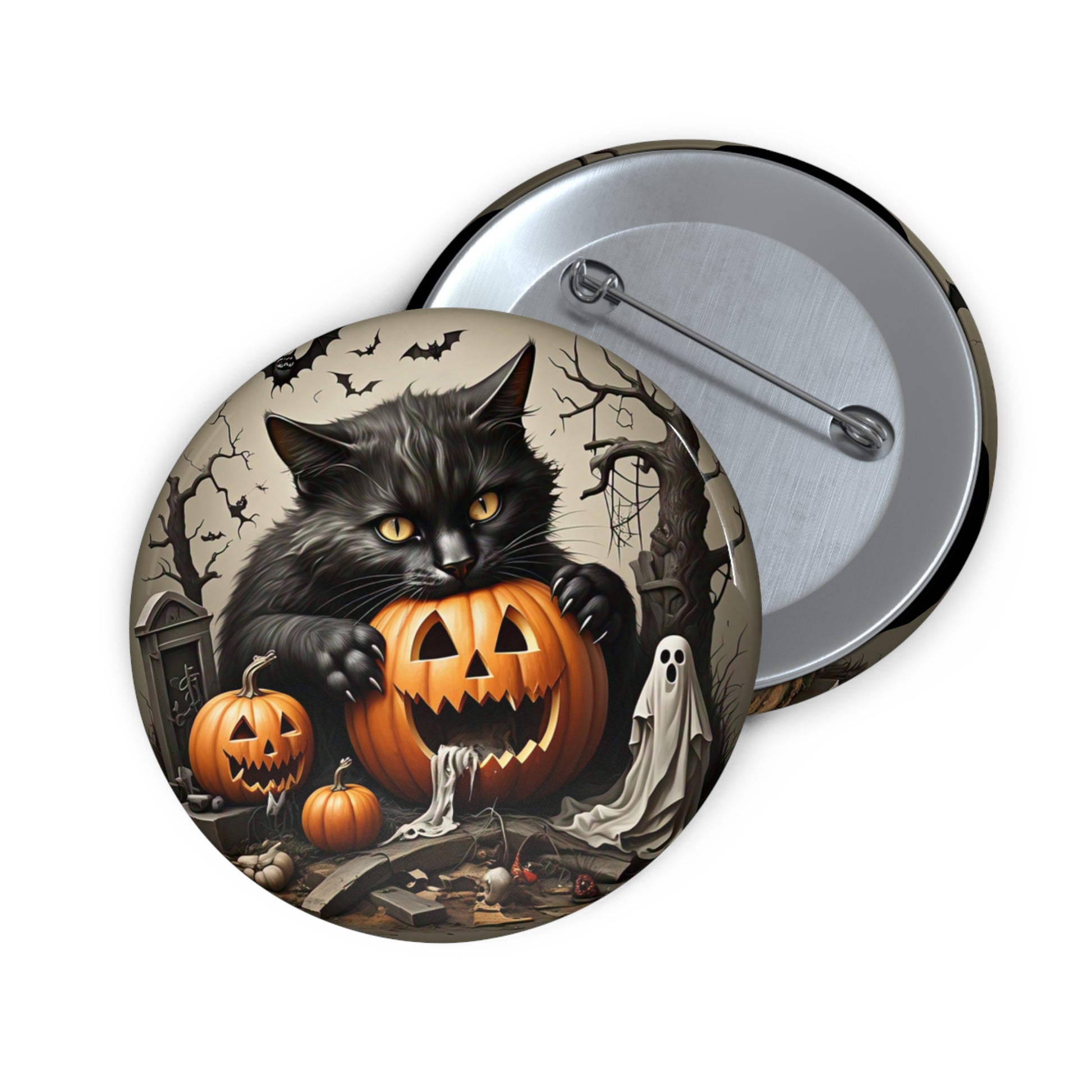 Halloween Pin Button,Black cat,Pumpkin,Trick or Treat,Halloween collectible, boo