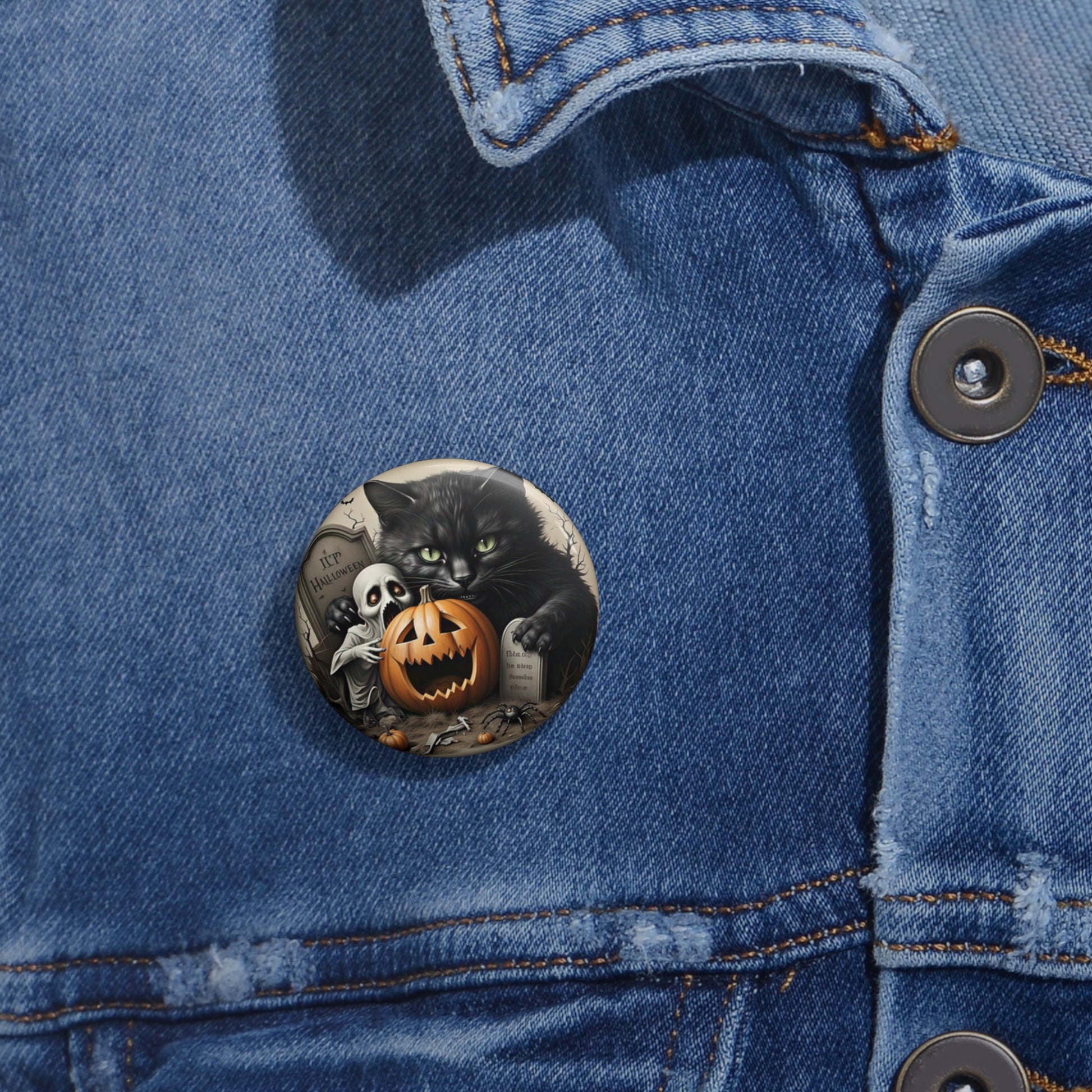 Haunted Halloween,Black Cat Pin Button,Ghost Brooch,Holiday Accessory,Spooky Pin