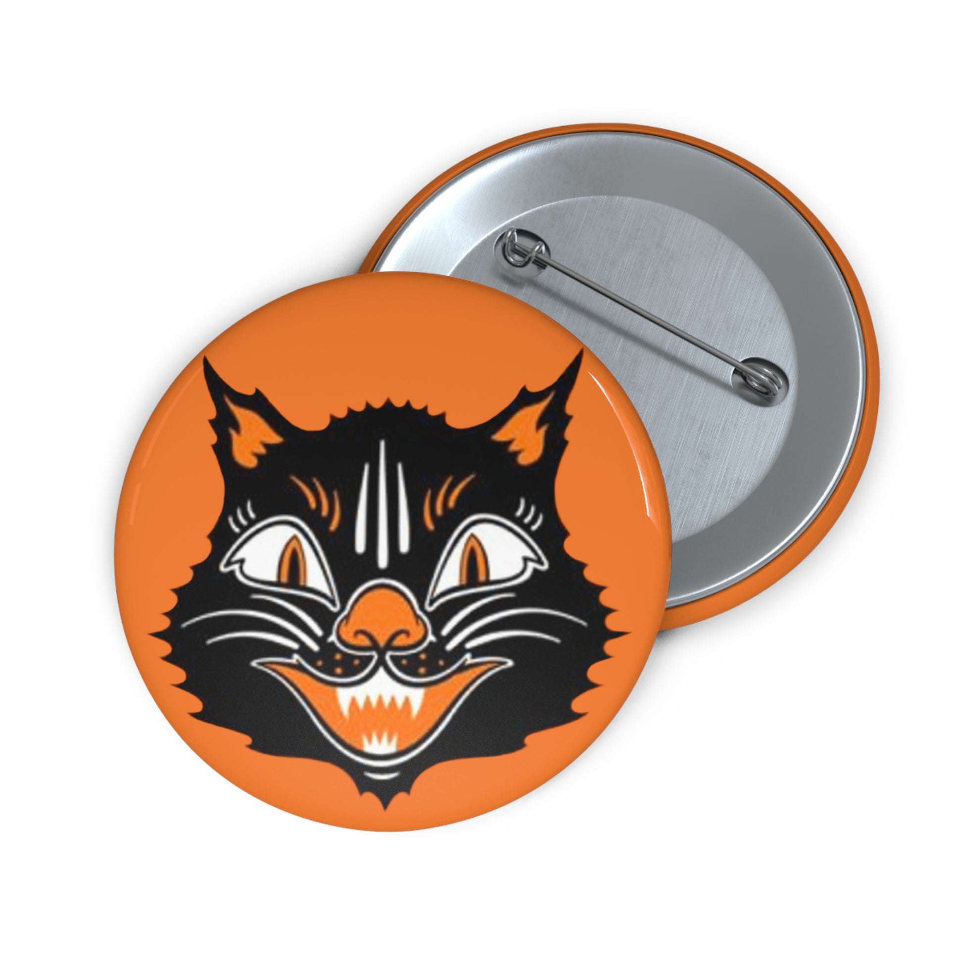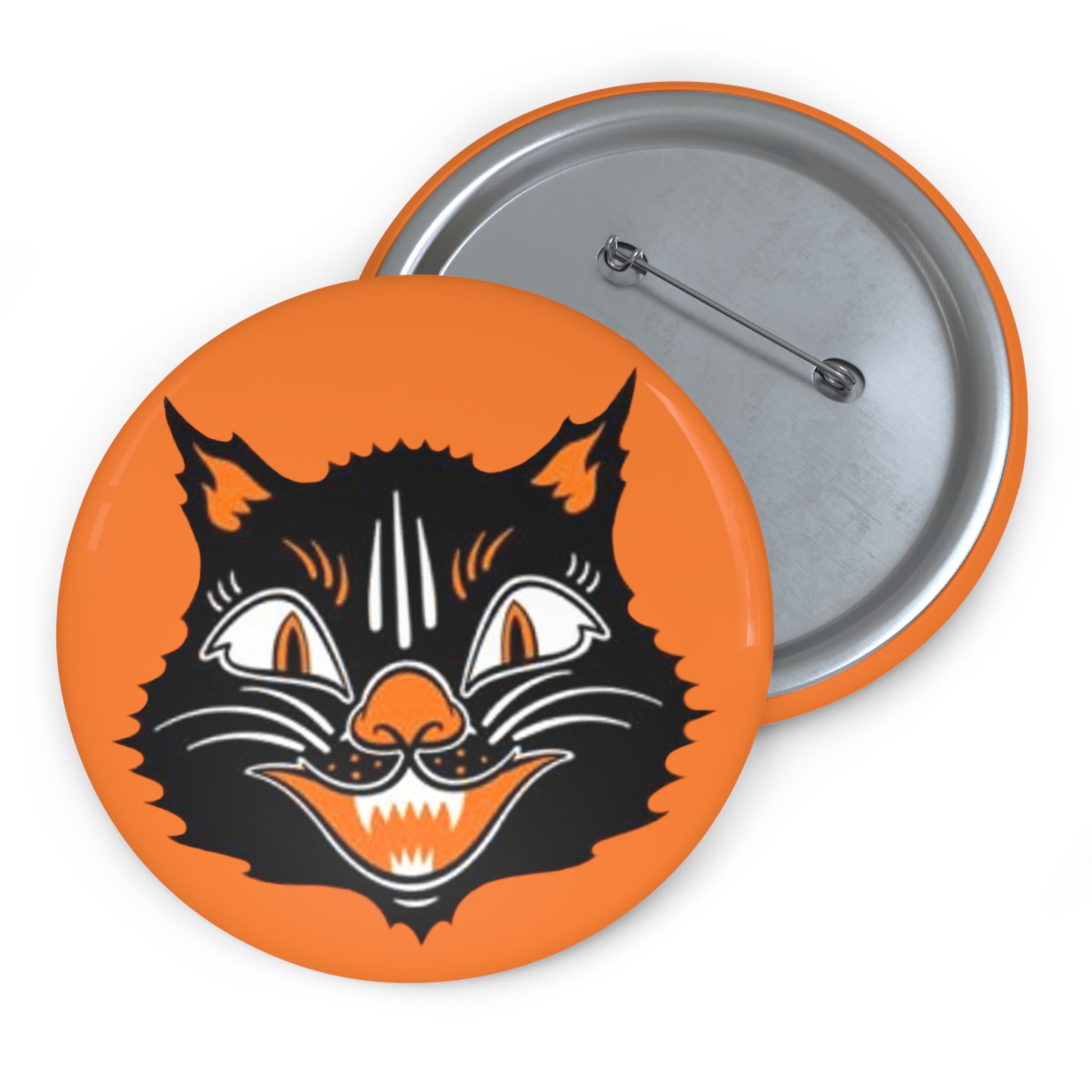 Vintage Halloween Black Cat Metal Pin Button,Spooky gift,Retro accessories,Boo