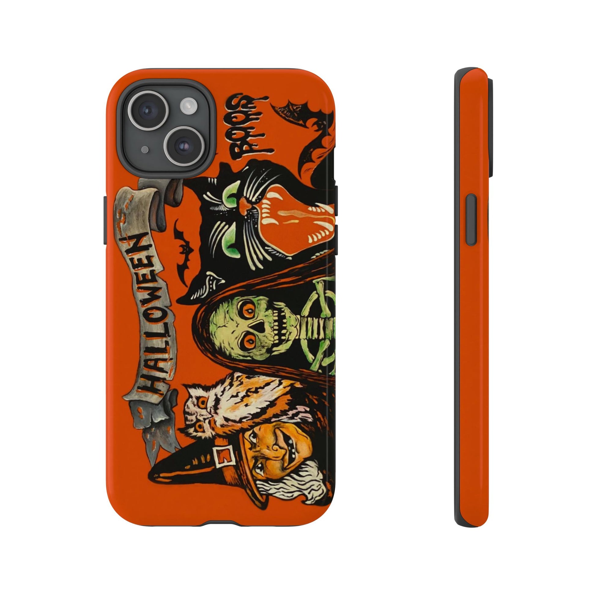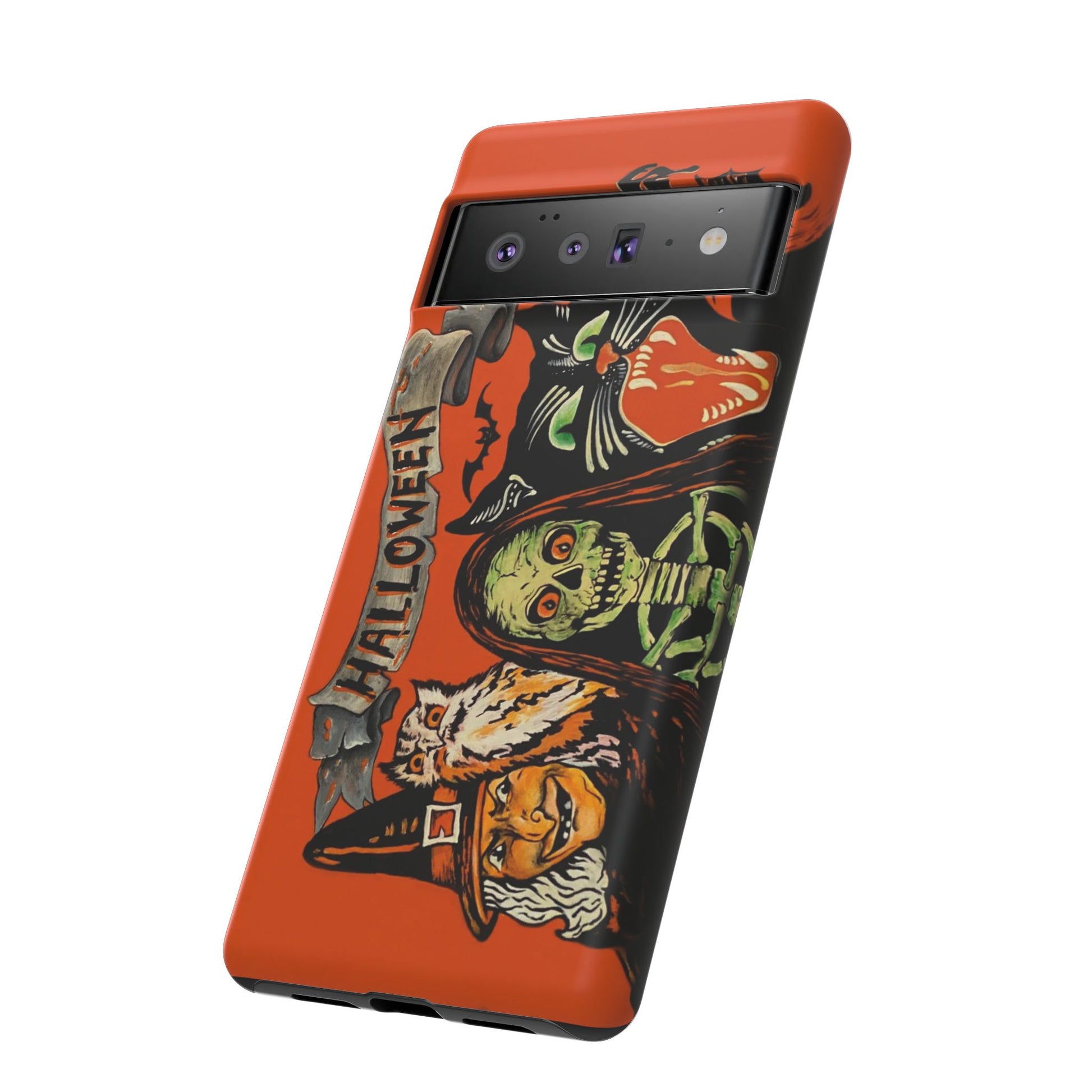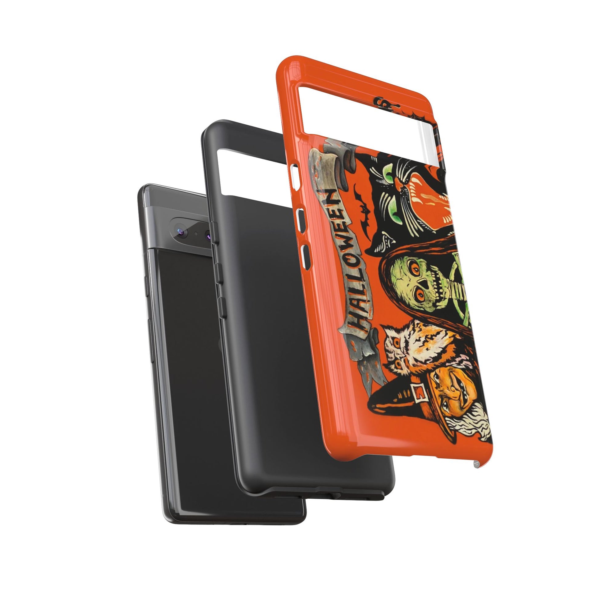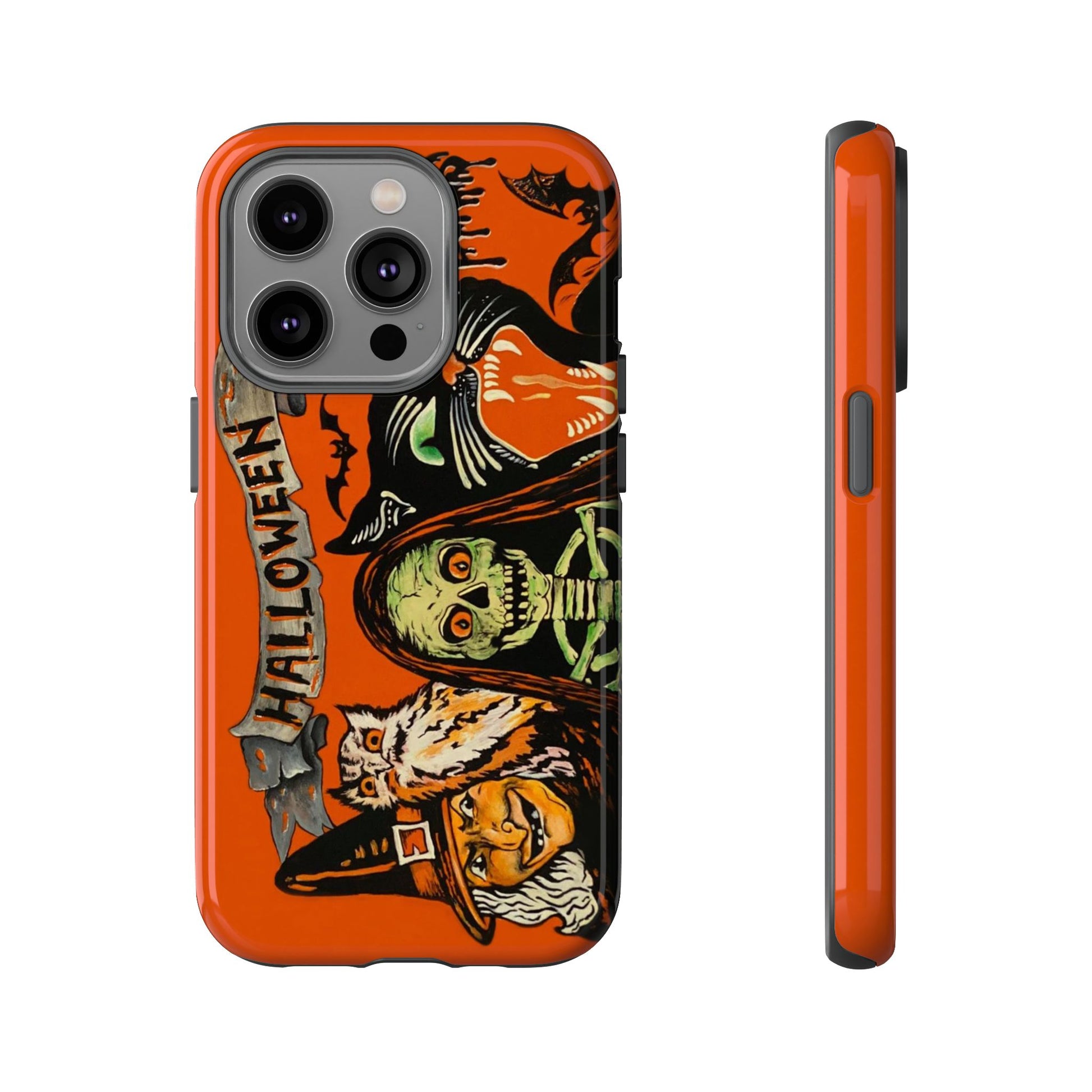 Vintage Halloween Phone Case,Tough Phone Cover,Spooky Accessory, Witch, Cat, Owl