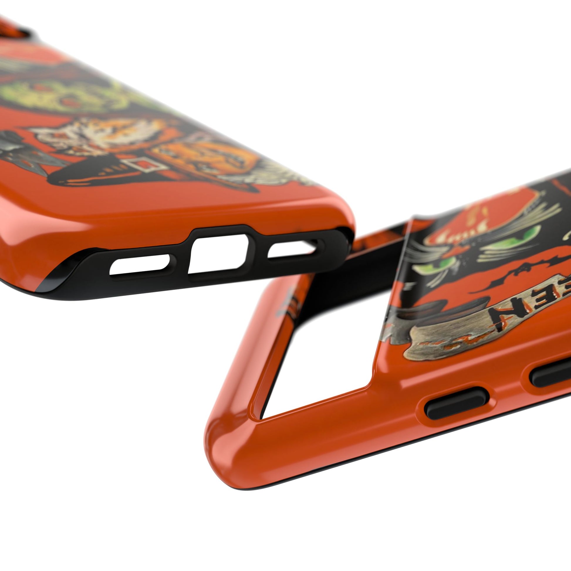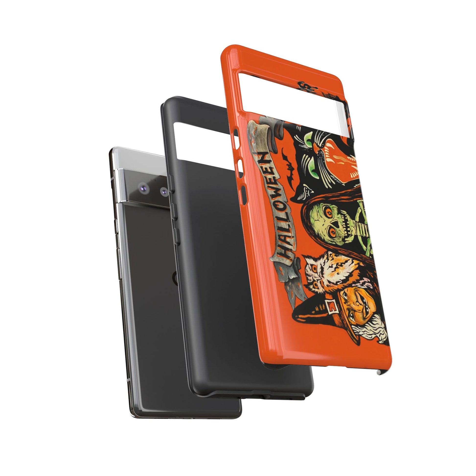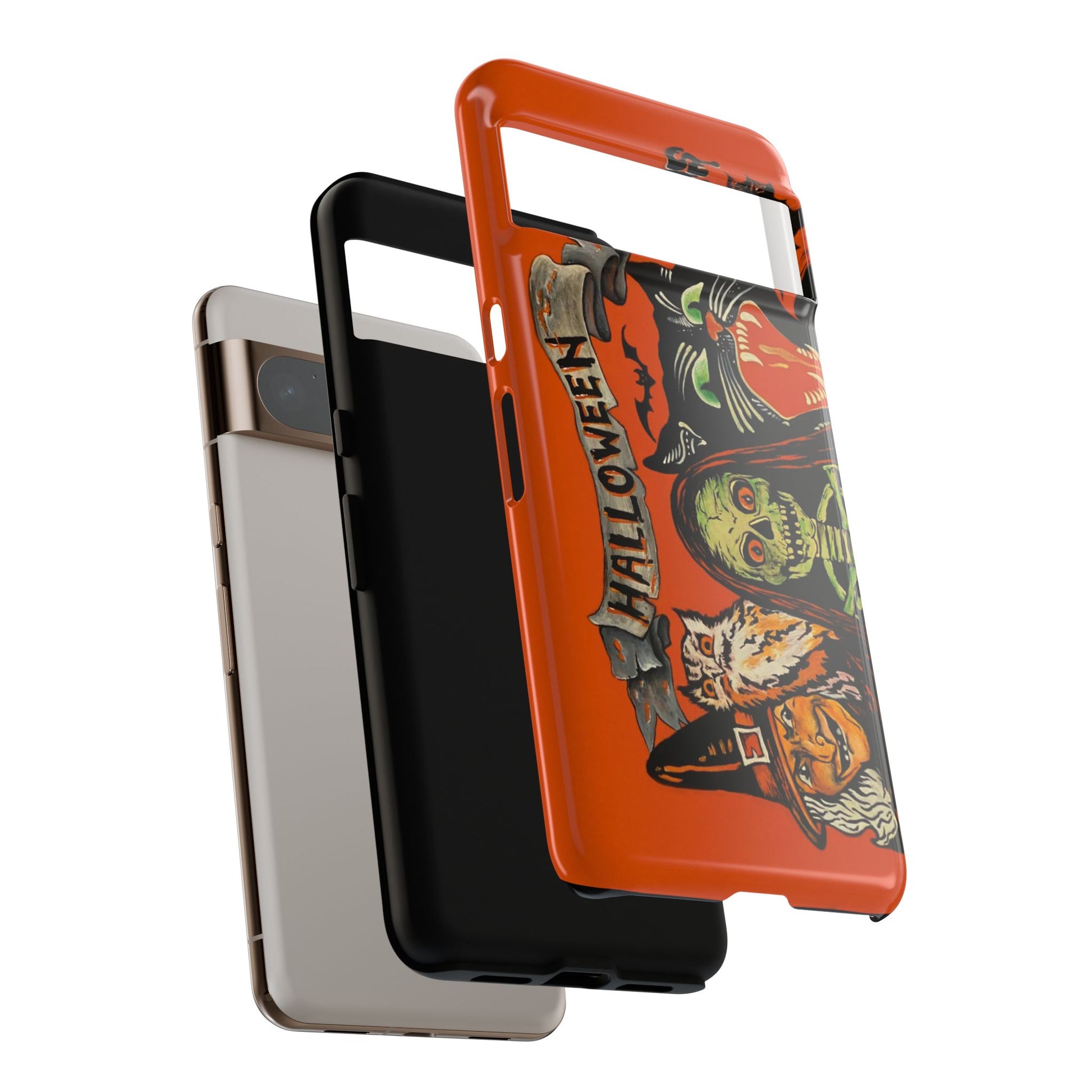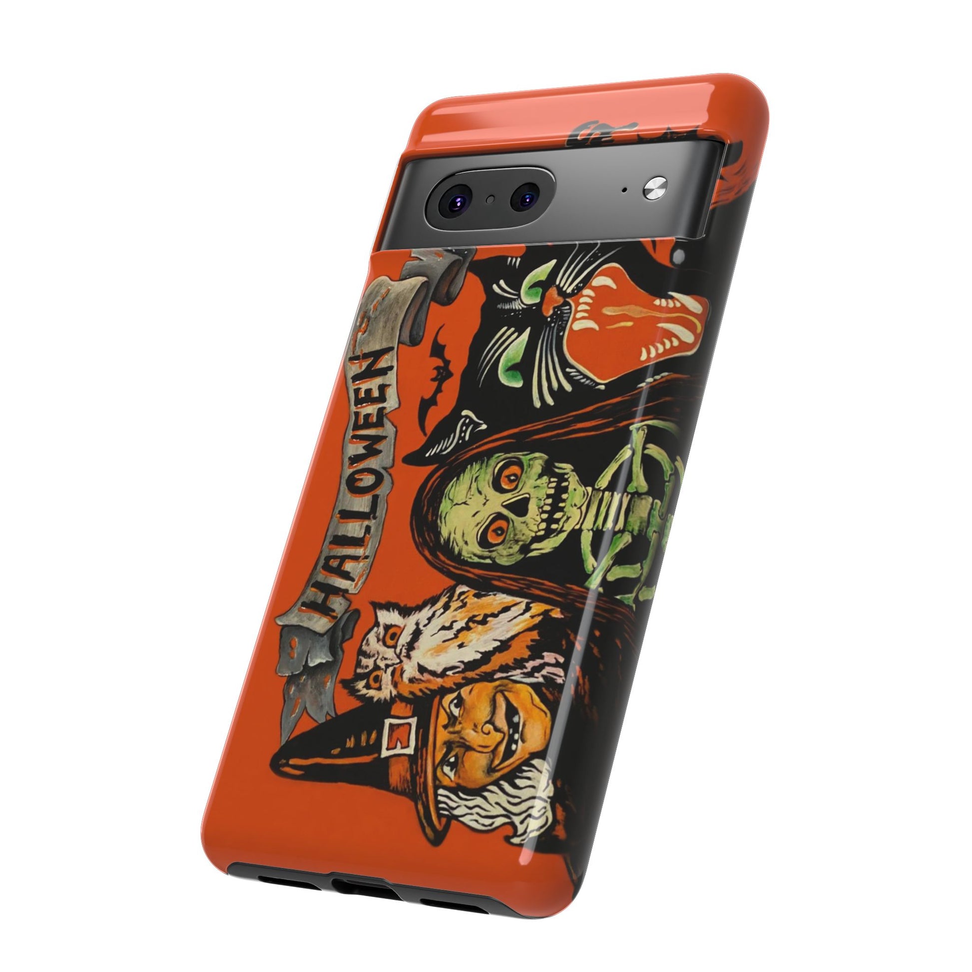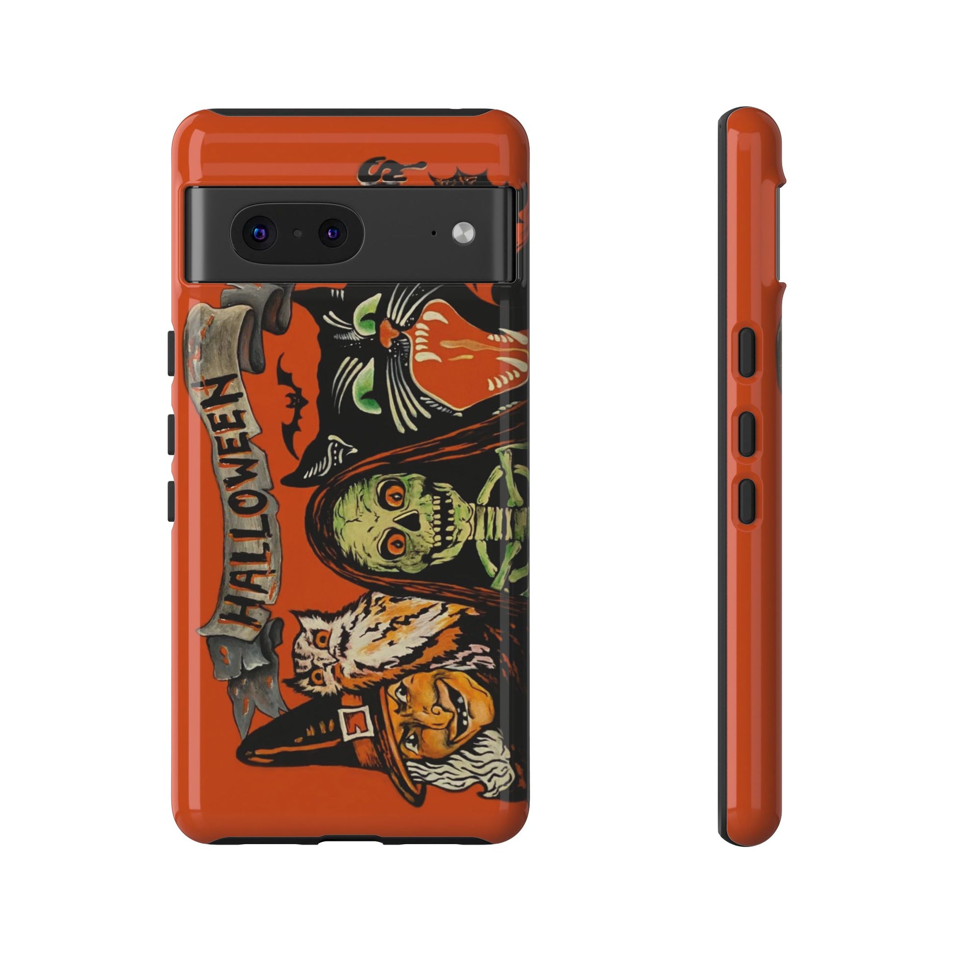 Vintage Halloween Phone Case,Tough Phone Cover,Spooky Accessory, Witch, Cat, Owl