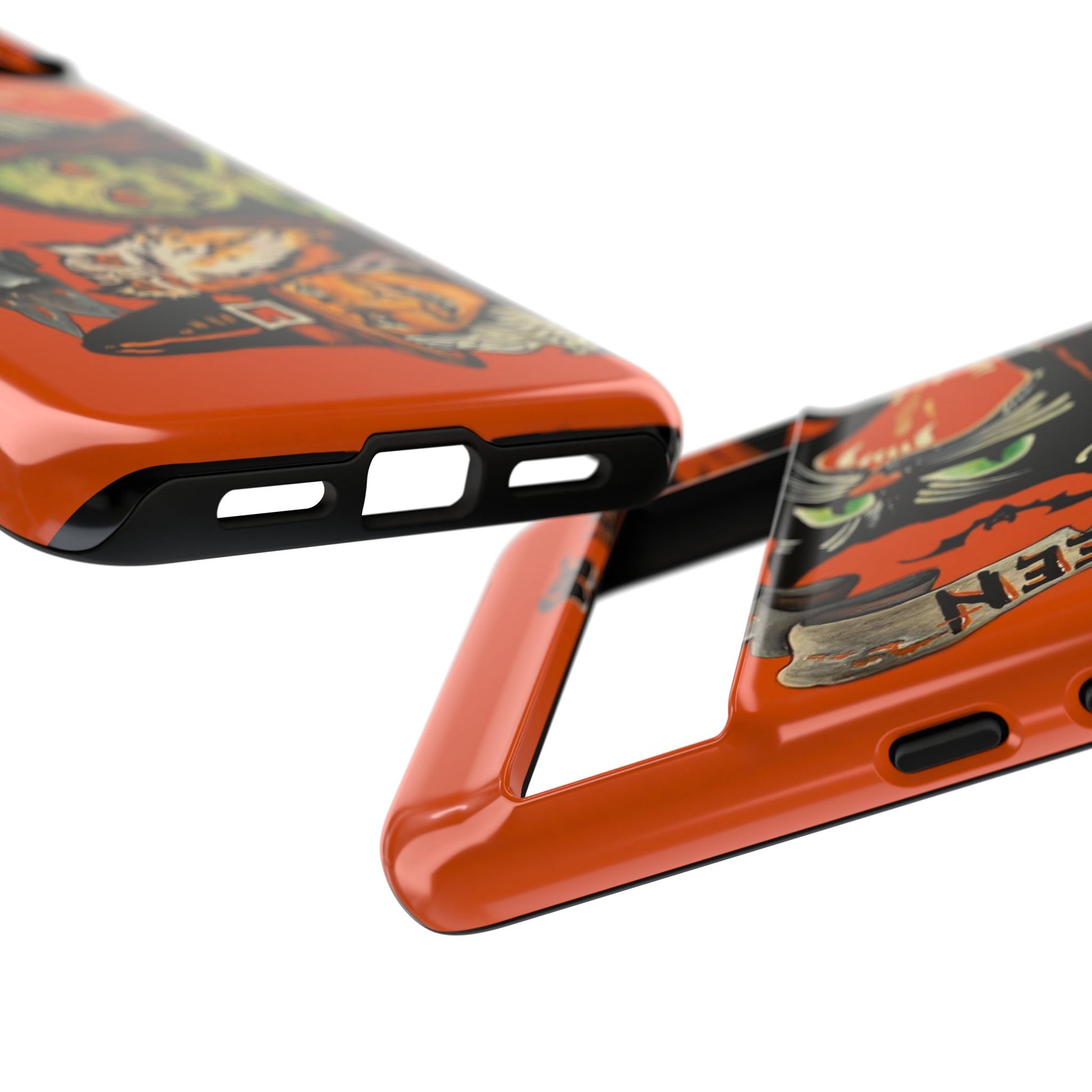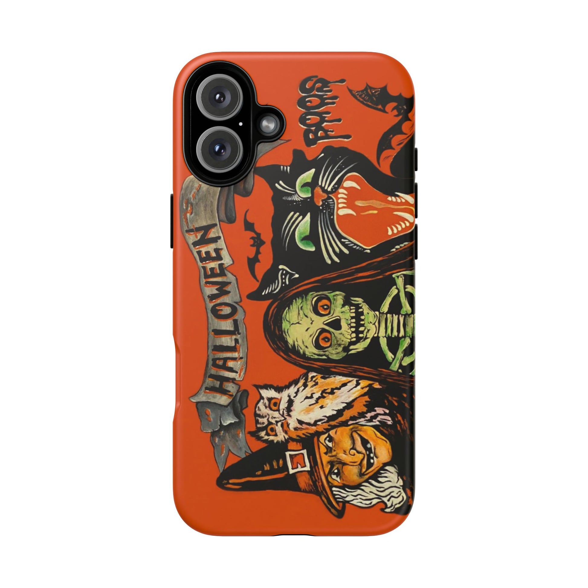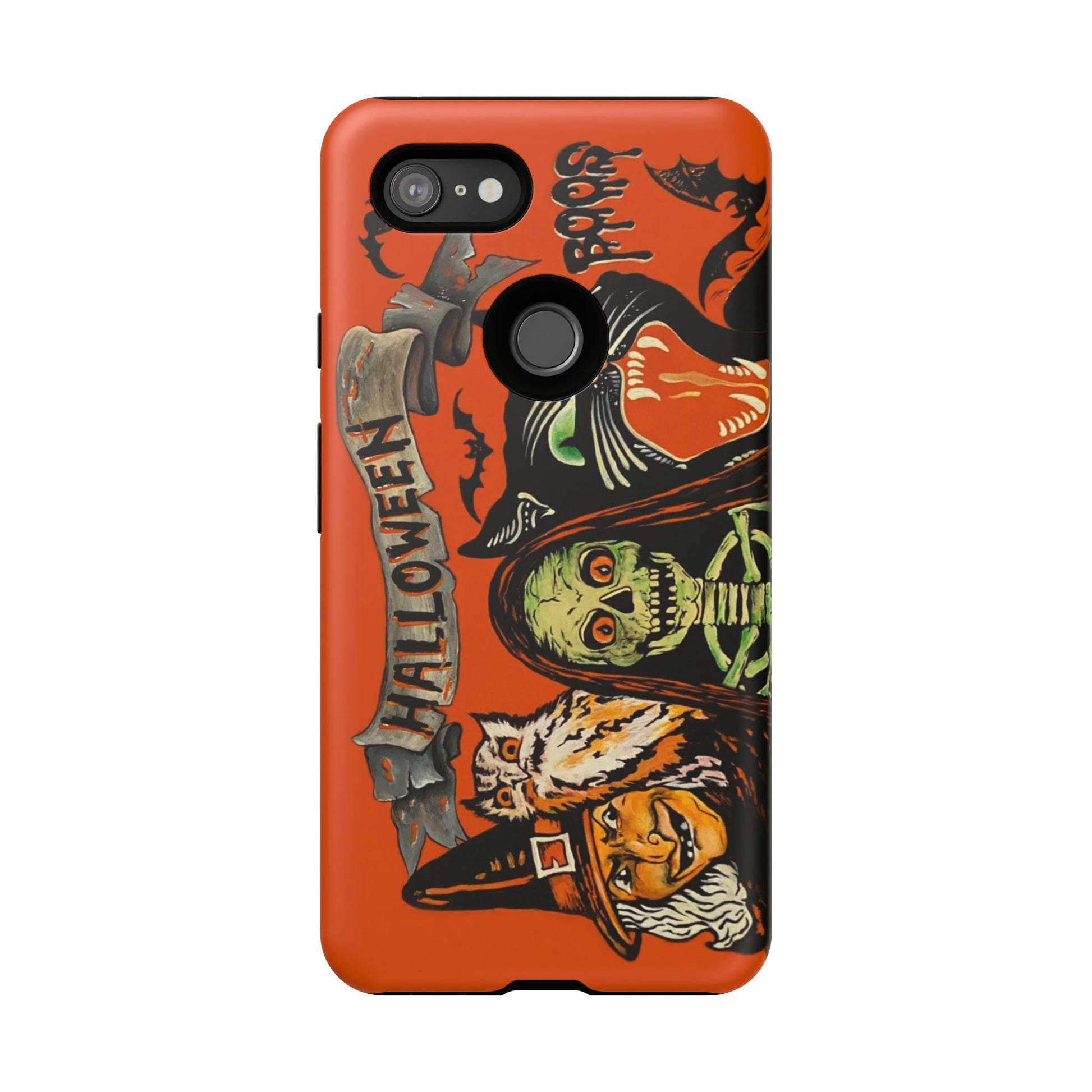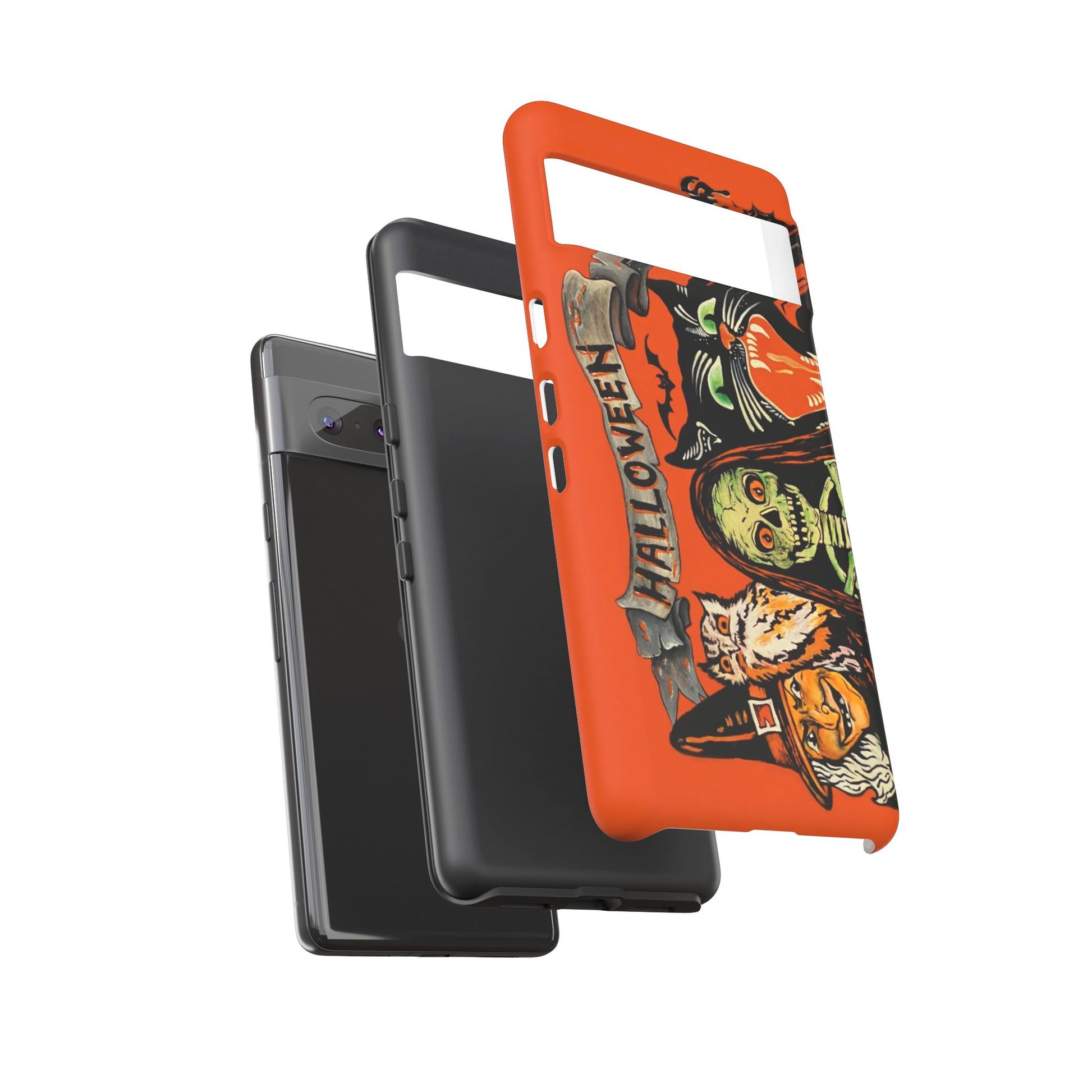 Vintage Halloween Phone Case,Tough Phone Cover,Spooky Accessory, Witch, Cat, Owl