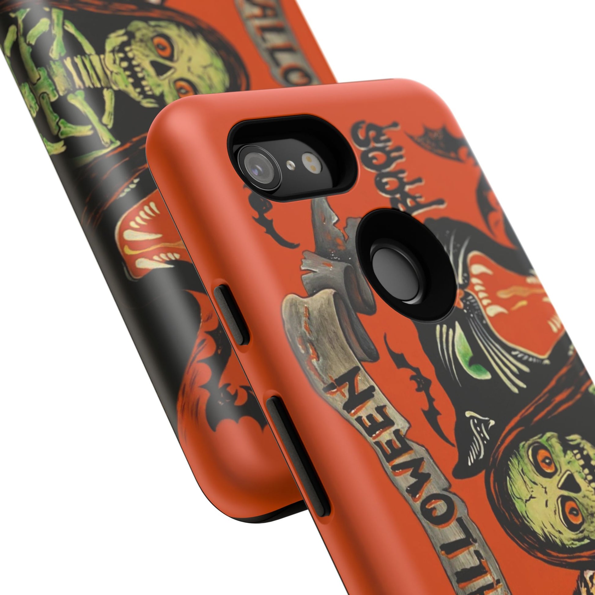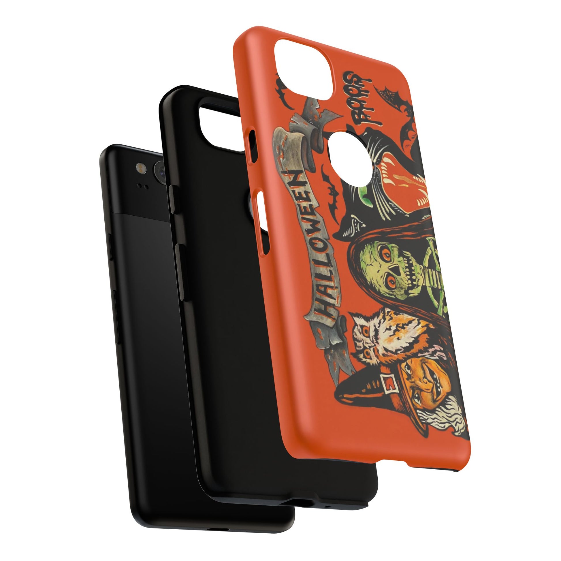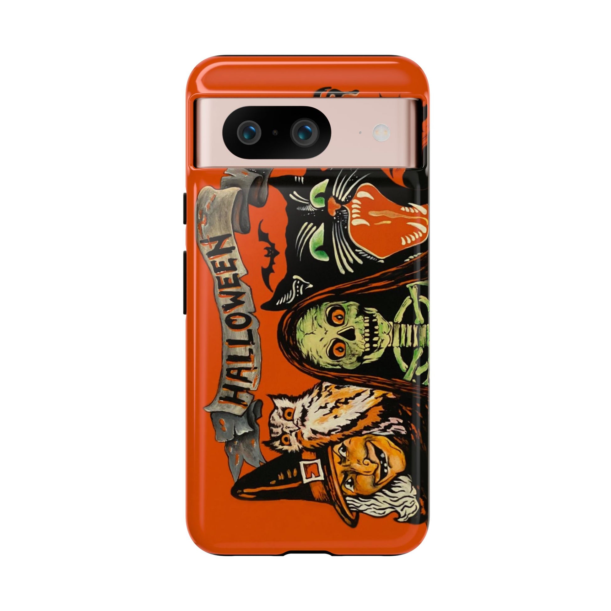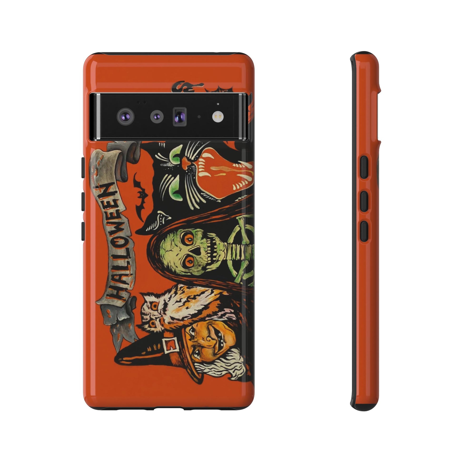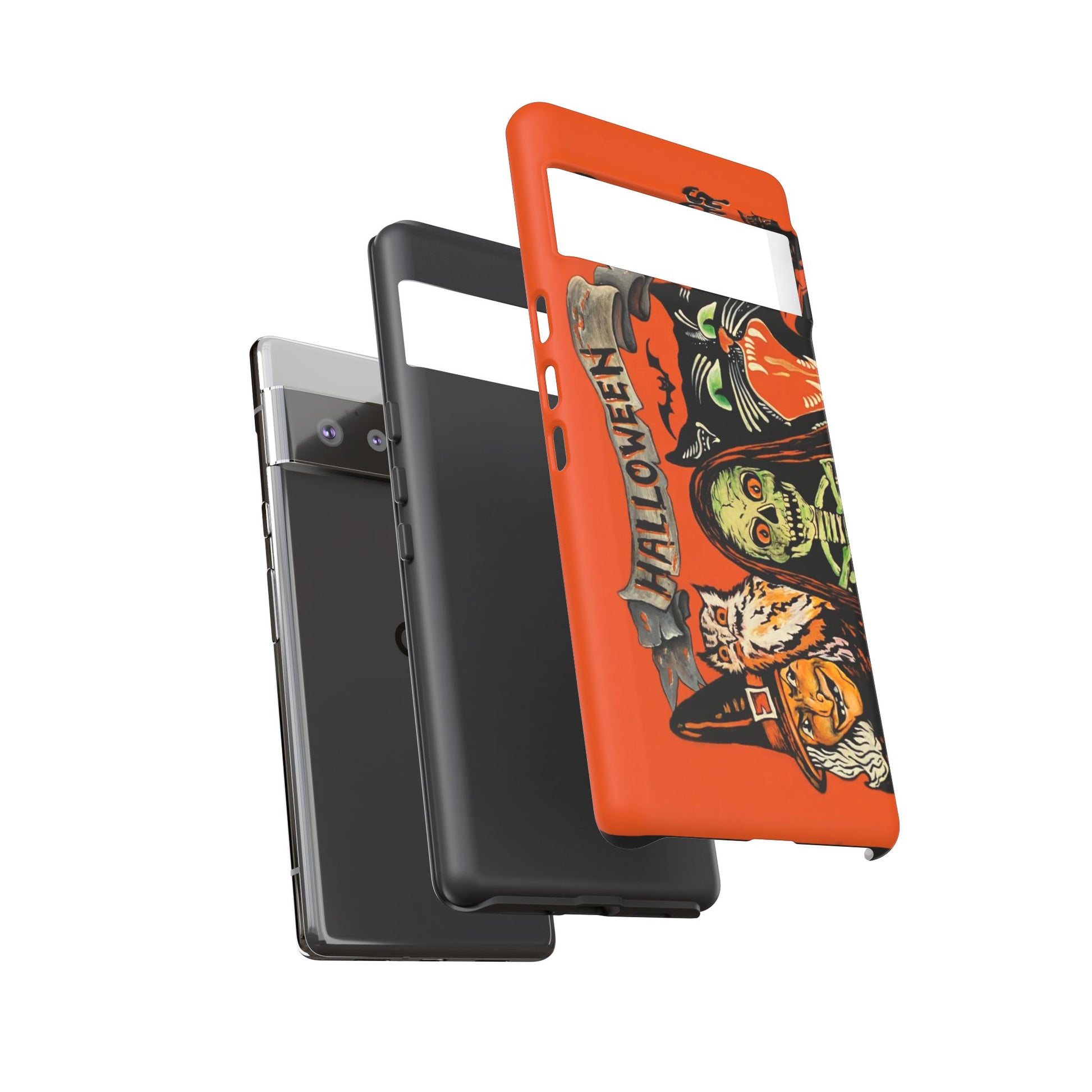 Vintage Halloween Phone Case,Tough Phone Cover,Spooky Accessory, Witch, Cat, Owl