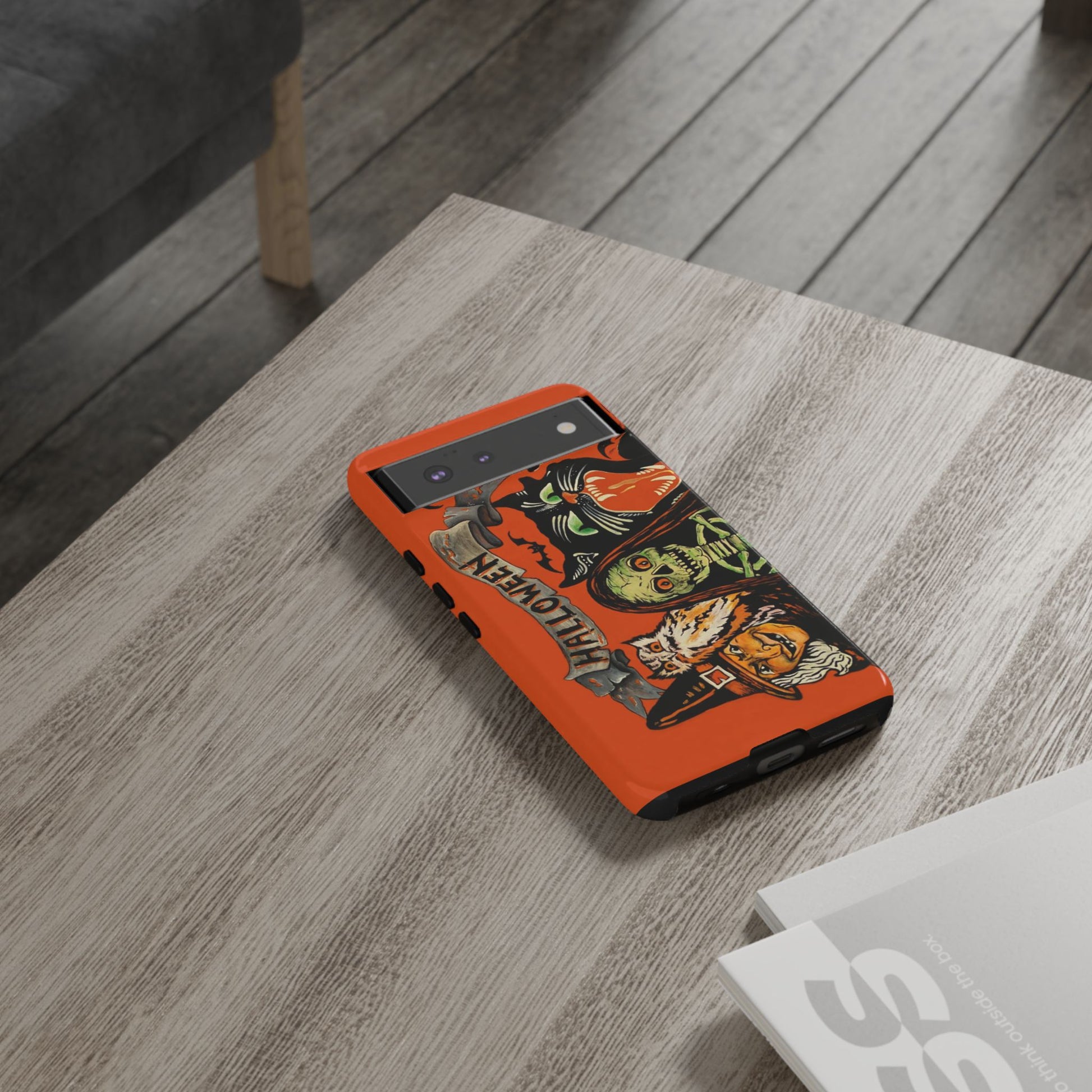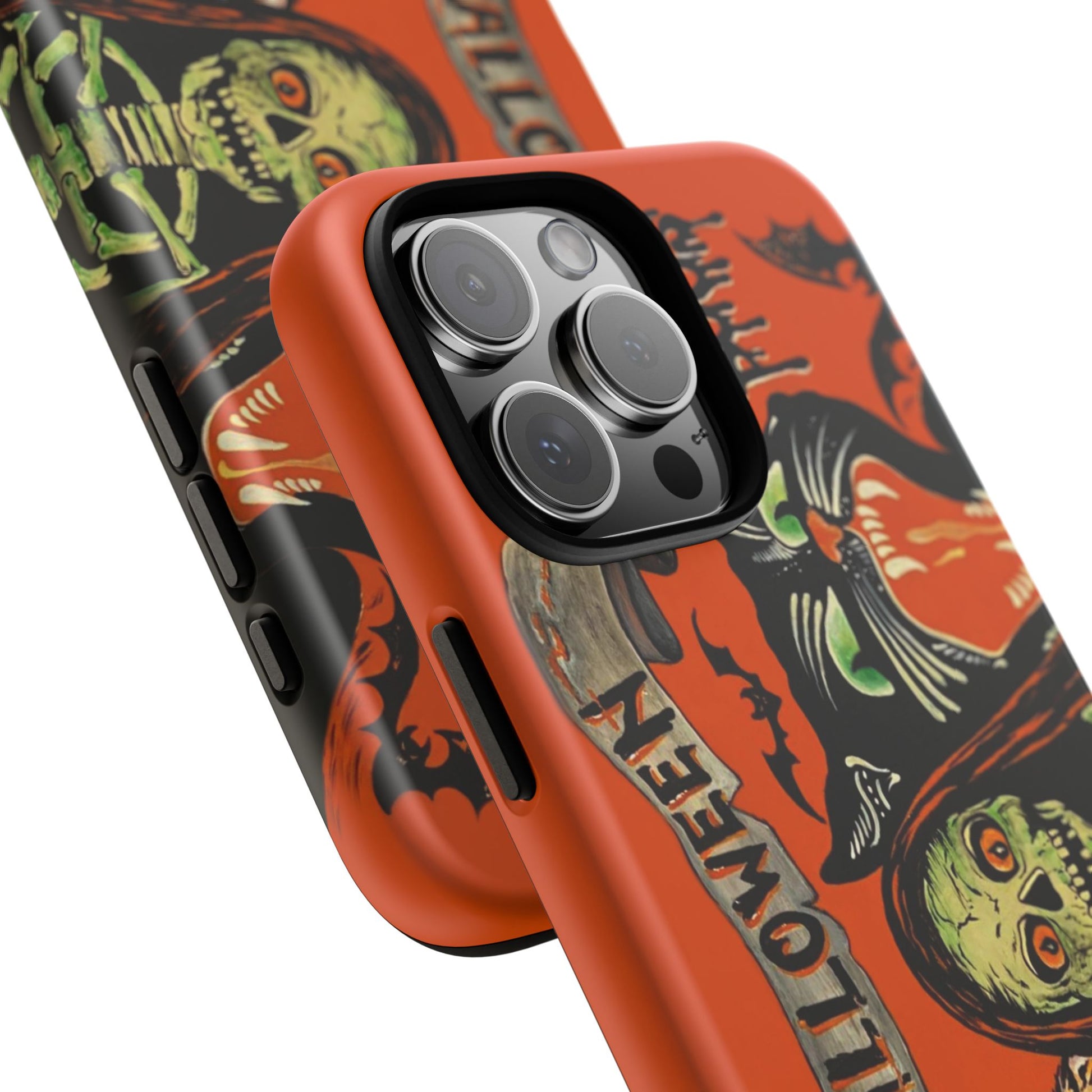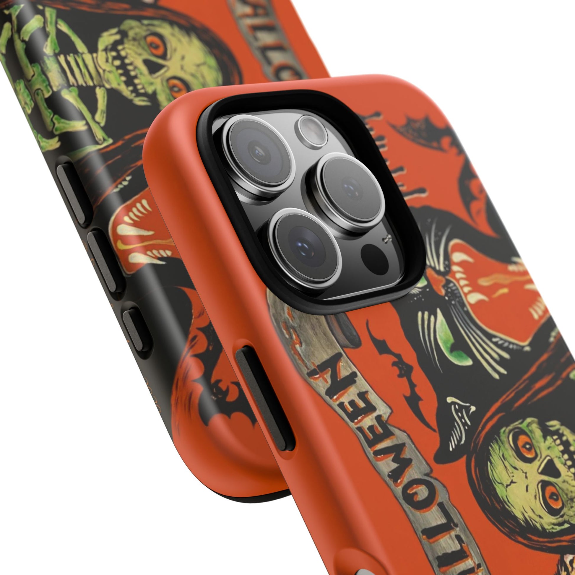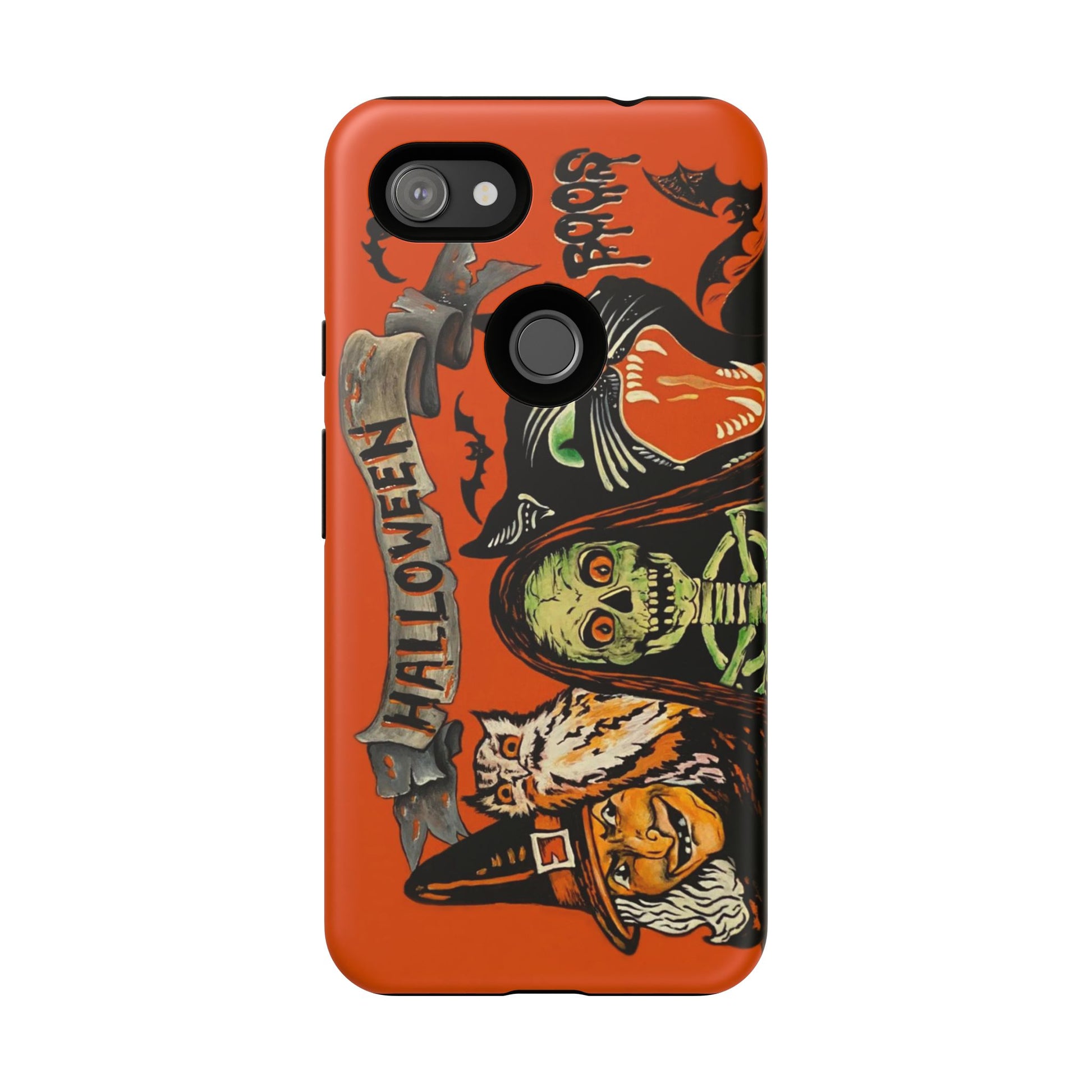 Vintage Halloween Phone Case,Tough Phone Cover,Spooky Accessory, Witch, Cat, Owl